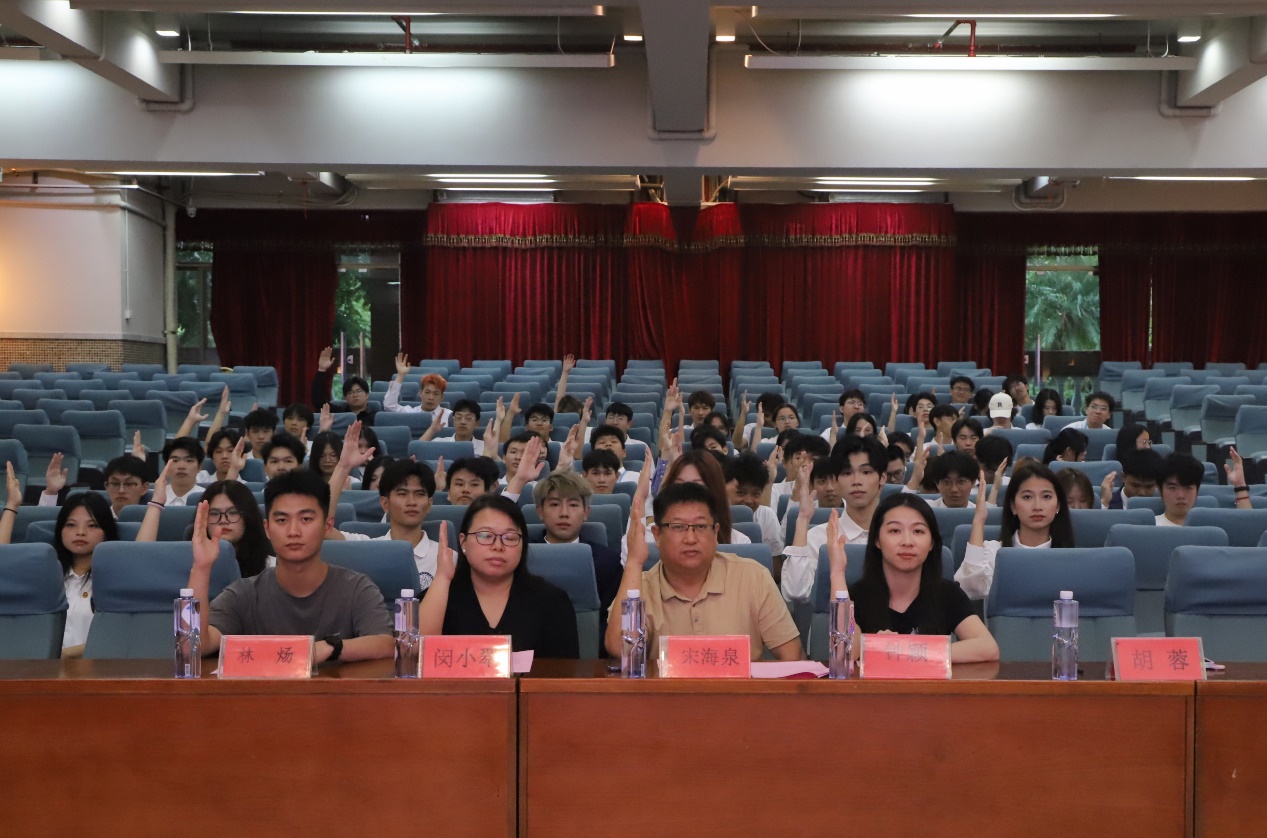隨后,宋海泉副院長發(fā)表了熱情洋溢的講話。他對過去一年團委學(xué)生會的工作給予了充分肯定,并對新一屆主席團成員提出了殷切期望。第二屆主席團代表王展鵬同學(xué)和第三屆主席團代表黃楚權(quán)同學(xué)也分別發(fā)表了感言,回顧了各自在學(xué)生會的工作經(jīng)歷,并表達了對未來工作的美好愿景。