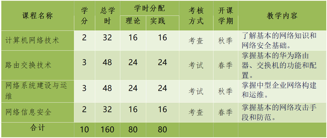 本專業(yè)培養(yǎng)具有良好的計算機網(wǎng)絡基礎和網(wǎng)絡設計思維能力,掌握計算機網(wǎng)絡的基礎理論和專業(yè)知識,具有較好的實踐能力,掌握網(wǎng)絡設備配置和信息安全防護的基本方法,能夠綜合使用路由器、交換機等網(wǎng)絡設備解決社會發(fā)展和企業(yè)生產(chǎn)中有關(guān)網(wǎng)絡系統(tǒng)建設及網(wǎng)絡安全實際問題的高素質(zhì)復合型人才。