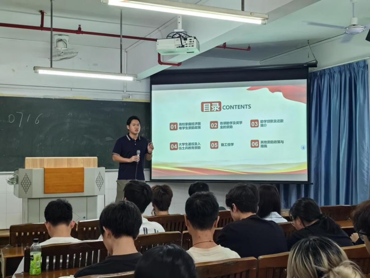 為進(jìn)一步宣傳落實(shí)好國(guó)家資助政策,將學(xué)生資助工作與思想政治工作緊密結(jié)合,做好學(xué)生誠(chéng)信教育、感恩教育和勵(lì)志教育,增強(qiáng)學(xué)生誠(chéng)信意識(shí)、風(fēng)險(xiǎn)意識(shí)和感恩意識(shí),2025年5月13日下午,計(jì)算機(jī)信息工程學(xué)院在西三教學(xué)樓開(kāi)展資助政策宣講會(huì)講座?;顒?dòng)由計(jì)算機(jī)信息工程學(xué)院資助專(zhuān)員何汶棟老師主持。