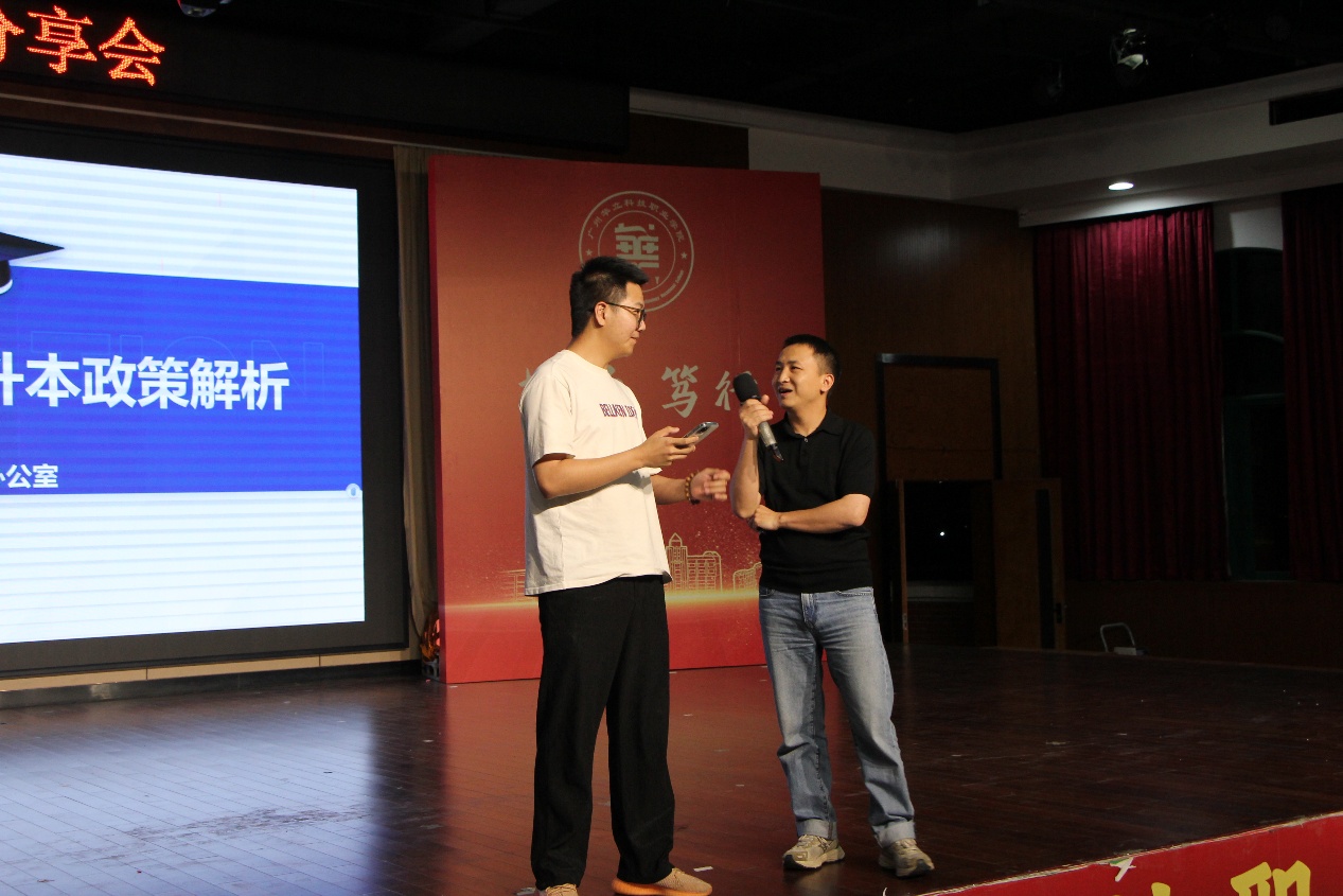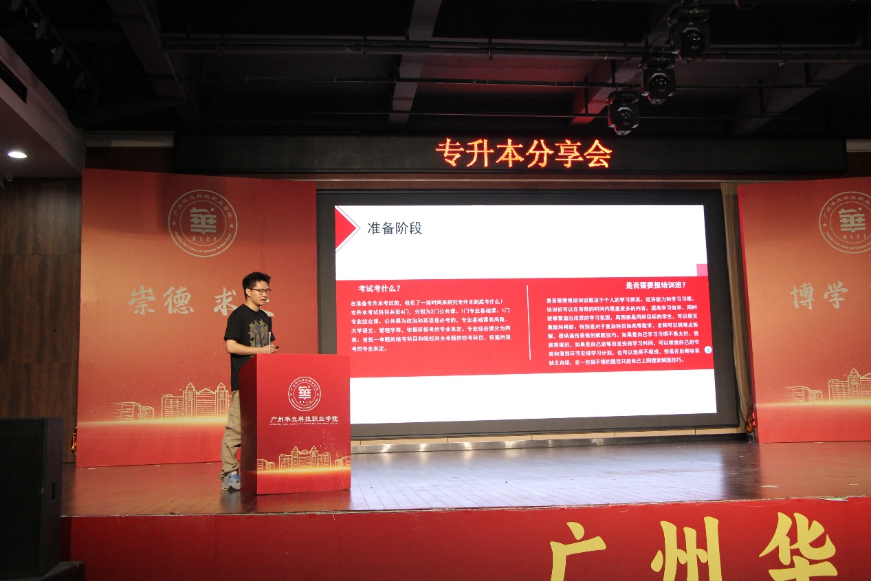 隨后兩名跨專業(yè)考生分享心得。其中江皓雪在學(xué)業(yè)規(guī)劃中展現(xiàn)出非凡勇氣與決斷,毅然跨專業(yè)報(bào)考工商管理專業(yè)。她突破跨學(xué)科知識(shí)壁壘,以堅(jiān)韌學(xué)習(xí)構(gòu)建高效體系,終以 347 分被廣州南方學(xué)院錄取;陳錦豪同學(xué)從人工智能跨考工商管理。他在備考過程中創(chuàng)新融合思維,摸索出“精準(zhǔn)規(guī)劃 + 高效刷題”的獨(dú)特學(xué)習(xí)方法,以 351 分被廣州白云學(xué)院錄取,為跨考提供成功范式。