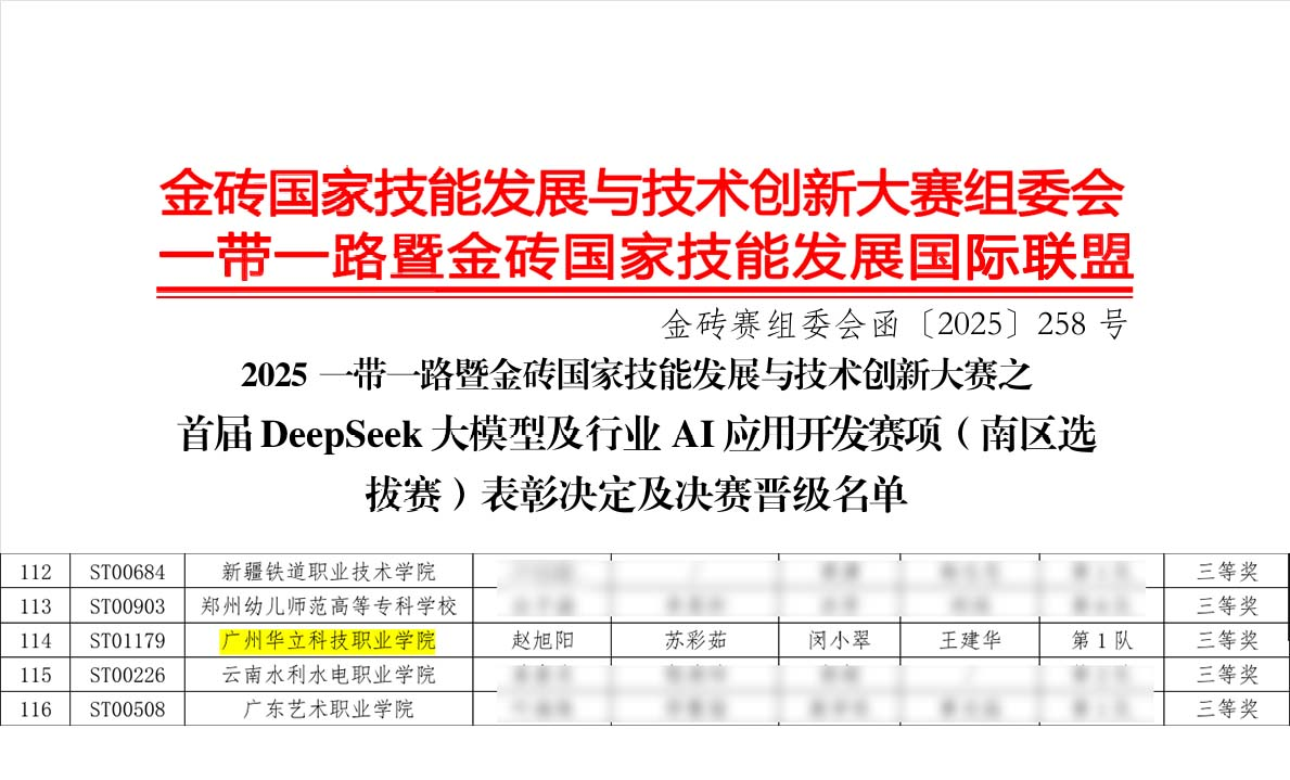 近日,2025一帶一路暨金磚大賽之首屆DeepSeek大模型及行業(yè)AI應(yīng)用開(kāi)發(fā)賽項(xiàng)(南區(qū)選拔賽)圓滿收官。我校計(jì)算機(jī)信息工程學(xué)院趙旭陽(yáng)、蘇彩茹同學(xué)組成的代表隊(duì),在王建華院長(zhǎng)與閔小翠副院長(zhǎng)指導(dǎo)下,與甘肅、陜西等11省283支本專科參賽隊(duì)同臺(tái)競(jìng)技,最終憑借在大模型技術(shù)應(yīng)用與行業(yè)AI解決方案設(shè)計(jì)中的出色表現(xiàn),榮獲三等獎(jiǎng)。