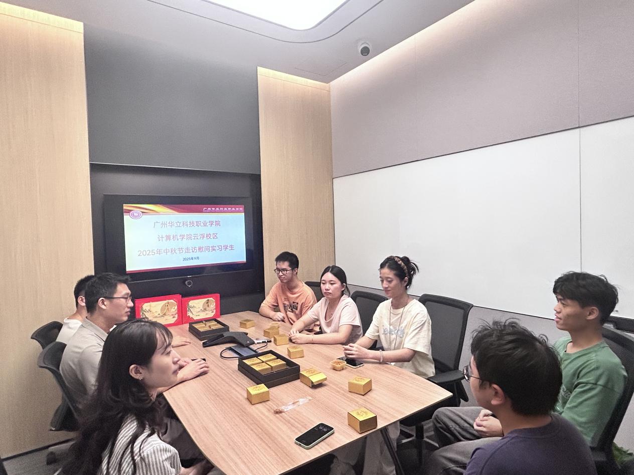 當(dāng)日下午,黃院助一行來到元時空智能科技有限公司,親切看望了正在這里實(shí)習(xí)的2023級學(xué)生,為他們送上中秋月餅和節(jié)日的暖心祝福,并與學(xué)生代表座談。