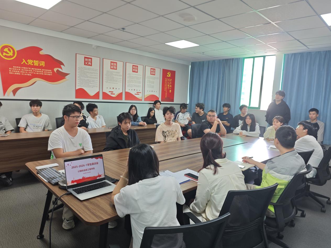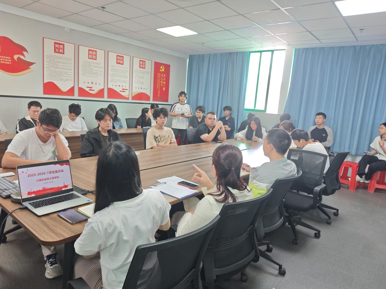 為深入踐行“以生為本”的育人理念,搭建學(xué)院與學(xué)生常態(tài)化溝通橋梁,及時(shí)回應(yīng)學(xué)生在學(xué)習(xí)、教學(xué)、生活等方面的合理訴求,2025年11月10日上午,計(jì)算機(jī)信息工程學(xué)院2025-2026-1學(xué)年學(xué)生座談會(huì)在學(xué)院會(huì)議室順利召開(kāi)。學(xué)院教學(xué)主任王蘭豐、教學(xué)督導(dǎo)魏育華、教務(wù)員黃斯華,以及來(lái)自2024級(jí)、2025級(jí)各班級(jí)的20余名學(xué)生代表齊聚一堂,以面對(duì)面交流的形式共話成長(zhǎng)。