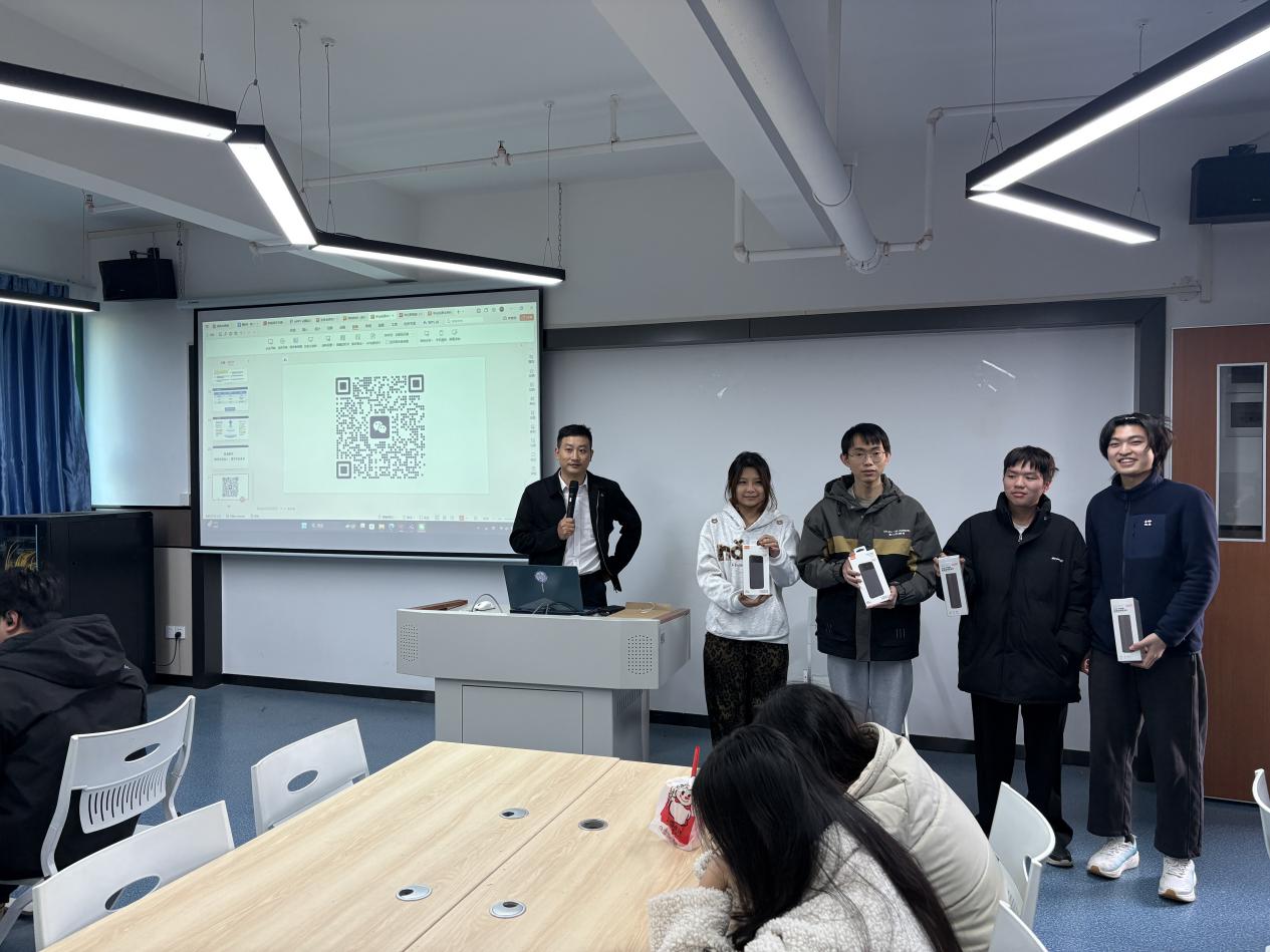 宣講核心內容結束后,現場進入互動問答環(huán)節(jié)。同學們踴躍舉手、積極提問,問題涵蓋專業(yè)技能要求、入職培訓安排、企業(yè)項目合作模式等多個方面。韋全先生耐心傾聽每一個問題,結合企業(yè)實際情況逐一給出細致解答,同時為參與提問的同學送上了精心準備的定制禮品,現場氛圍十分熱烈。