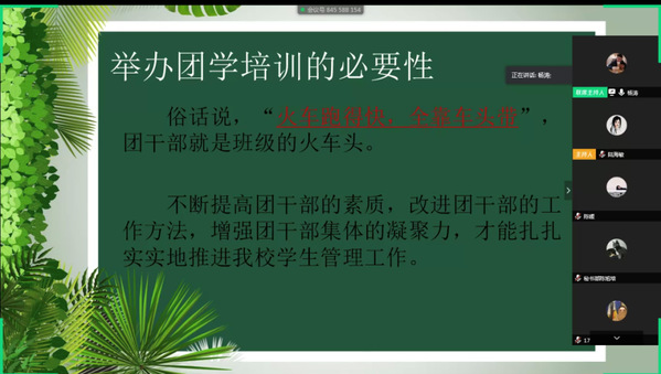 為了不斷提高團干部的素質(zhì),改進團干部的工作方法,增強團干部集體凝聚力。管理學(xué)院、國貿(mào)學(xué)院于2020年4月18日在騰訊會議軟件進行線上授課。