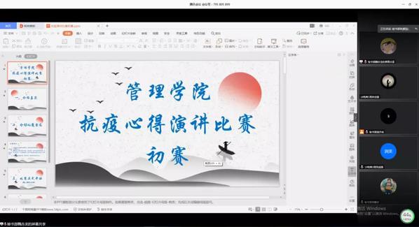 管理學院于2020年5月22日19:30在騰訊會議舉辦“展現(xiàn)抗疫風采,響亮青春色彩”為主題的線上演講比賽活動。