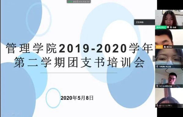 管理學(xué)院于2020年5月8日下午15點(diǎn)45分在騰訊會(huì)議召開了2019-2020學(xué)年度第二次“團(tuán)推優(yōu)”工作會(huì)議。參加本次會(huì)議的嘉賓有管理學(xué)院團(tuán)總支陳媛書記、學(xué)生會(huì)主席黃天龍同學(xué)、管理學(xué)院團(tuán)總支組織部成員以及18級(jí)、19級(jí)各班團(tuán)支書。會(huì)議由黃天龍同學(xué)主持。