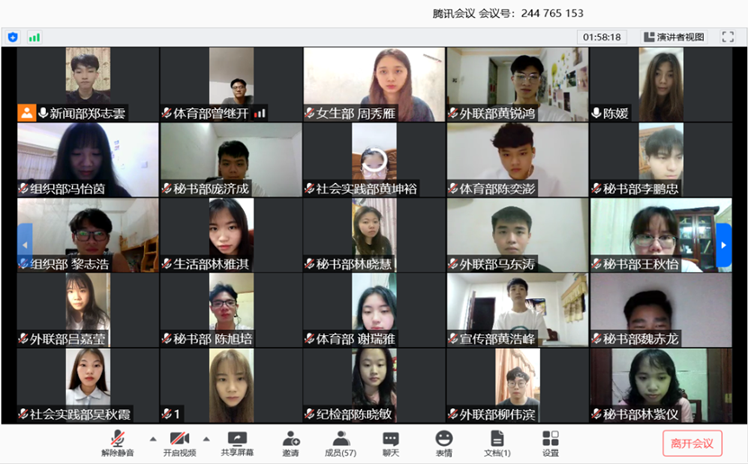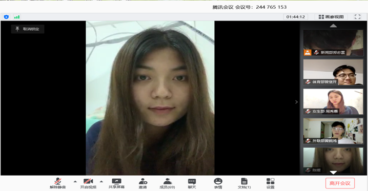 競選者按照順序依次打開攝像頭進(jìn)行演講,他們分別就各自的基本信息、競選職位、競選原因及未來一年的工作規(guī)劃進(jìn)行了簡短而精彩的演講。在短短幾分鐘內(nèi)給老師和主席團(tuán)的成員留下了深刻的印象。