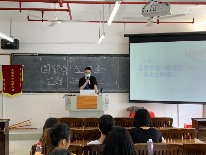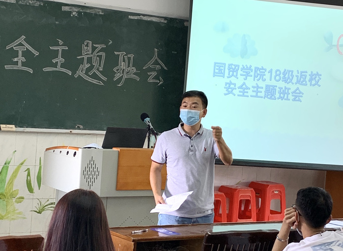 2020年7月6日在西一各班教室召開“18級返校安全主與安全離校班會”、“18級防詐騙主題班會”與“18級校外實習見面會”。本次會議由國貿學院學管主任劉偉鑫老師、18級輔導員陳權豐老師、18級各班校外指導老師主講,18級全體學生出席。