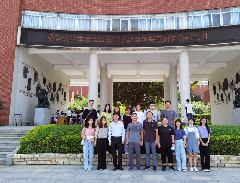 2020年7月12日上午,會(huì)計(jì)學(xué)院李哲院長(zhǎng)和校外教學(xué)主任黃冠霖老師在校園綜合樓前送會(huì)計(jì)學(xué)院10名18級(jí)學(xué)生,踏上去往深圳鼎泰財(cái)務(wù)顧問(wèn)有限公司實(shí)習(xí)的征程。
