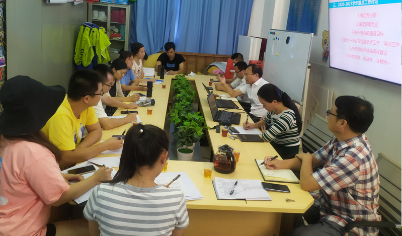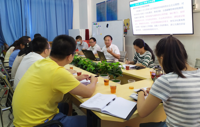 參會的老師一起討論學(xué)院2020-2021學(xué)年工作要點(diǎn)。新學(xué)年管理學(xué)院工作的指導(dǎo)思想是:深入學(xué)習(xí)貫徹習(xí)近平新時代中國特色社會主義思想,對照學(xué)校的計(jì)劃和531目標(biāo)要求,查找問題,全面破解影響學(xué)院教育發(fā)展的主要矛盾,圍繞加強(qiáng)內(nèi)涵建設(shè)的總體思路,凝心聚力,按照制度建設(shè)科學(xué)化、隊(duì)伍建設(shè)雙師化、專業(yè)建設(shè)特色化、課程建設(shè)精品化、基地建設(shè)標(biāo)準(zhǔn)化、學(xué)生管理精細(xì)化的要求,繼續(xù)深化教育教學(xué)改革,切實(shí)履行工作職能,創(chuàng)新人才培養(yǎng)模式,建立完善的質(zhì)量監(jiān)控體系,全面提高教育教學(xué)水平。