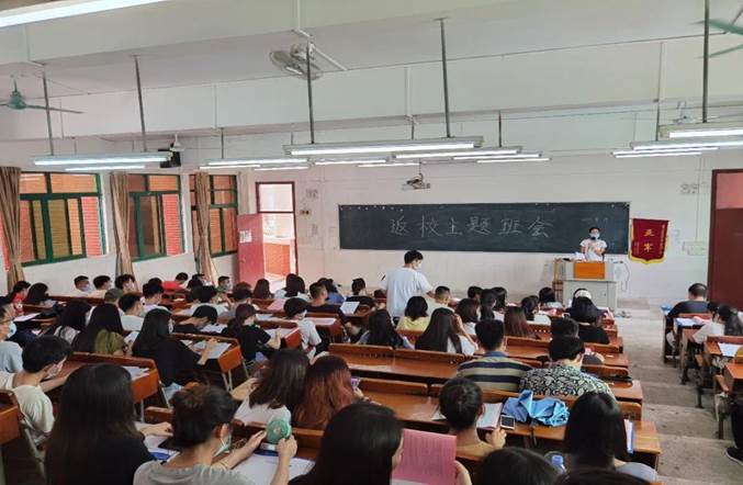 為了讓同學(xué)們注意返校后安全問題,我院18級輔導(dǎo)員召開主題班會,給我們講解了返校后需要注意的事項(xiàng)。