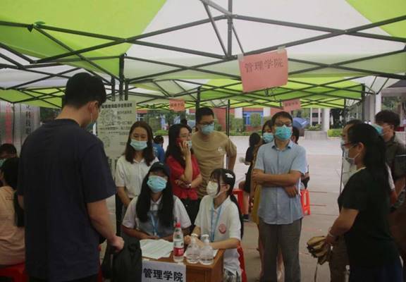 經(jīng)過了八個多月,同學們終于迎來了期盼已久的開學,沉寂許久的校園再次重啟。管理學院迎來了19級各專業(yè)的同學們返校,根據(jù)學校的工作安排,遵循“分批錯時”的原則,在校門口設(shè)立學生體溫測量、穗康碼的檢測點。