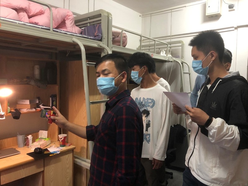 由國貿(mào)學(xué)院副院長隗波揚(yáng)老師,國貿(mào)學(xué)管主任劉偉鑫老師、國貿(mào)學(xué)院團(tuán)總支書記鄭慶國、19級國貿(mào)學(xué)院輔導(dǎo)員陳曉薇老師以及20級國貿(mào)學(xué)院輔導(dǎo)員廖后發(fā)老師帶隊(duì)深入學(xué)生宿舍進(jìn)行宿舍安全大檢查。