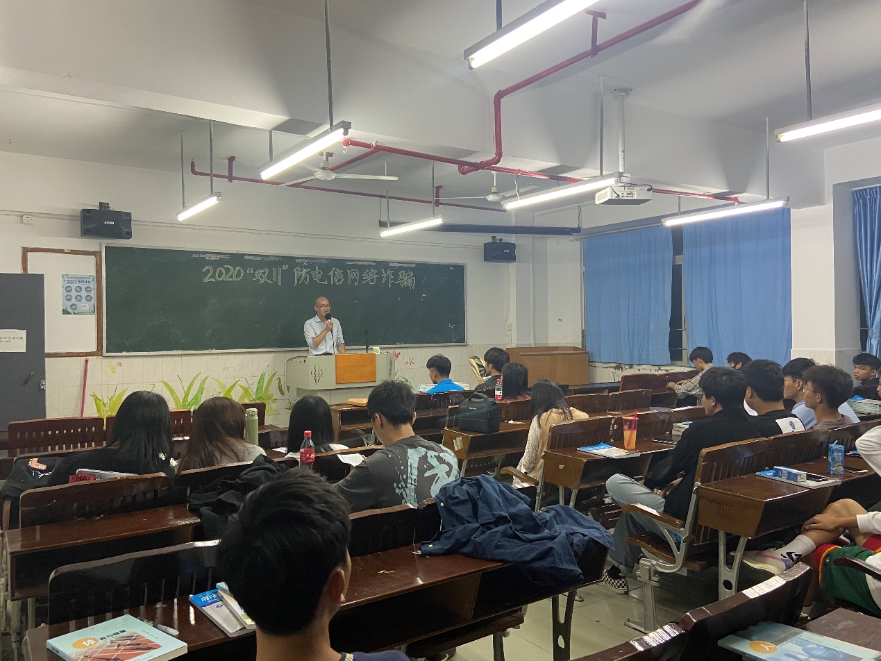 伴隨著互聯(lián)網(wǎng)的發(fā)展,以“套路貸”、電信網(wǎng)絡(luò)詐騙為代表的新型網(wǎng)絡(luò)犯罪發(fā)展迅猛、危害嚴(yán)重,不法分子利用大學(xué)生缺乏社會經(jīng)驗(yàn)的特點(diǎn)將黑手伸向校園,使青年學(xué)生身心健康和學(xué)習(xí)生活受到嚴(yán)重的影響。為幫助學(xué)生提高防范意識和識別能力,有效避免新型違法犯罪的侵害,特別是目前“雙十一”將至。為使同學(xué)們熟悉生活中常見的詐騙形式,增強(qiáng)在生活中遇到詐騙現(xiàn)象靈活應(yīng)對的防范意識,提高各方面自我預(yù)防、自我保護(hù)、自我應(yīng)對的能力。我院于2020年11月4日晚上7點(diǎn)在西一教學(xué)樓四樓各固定教室開展主題為:2020“雙11”防電信網(wǎng)絡(luò)詐騙主題班會。本次主題班會由國貿(mào)學(xué)院20級輔導(dǎo)員廖后發(fā)老師主講。