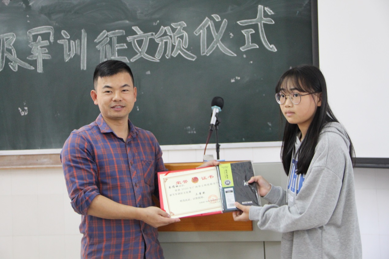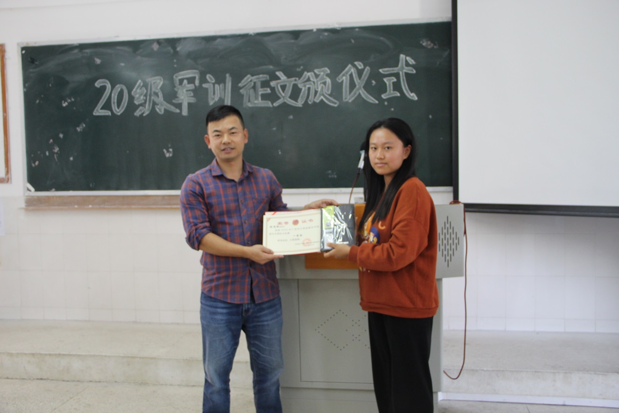首先,由主持人宣布國際經(jīng)濟(jì)與外語學(xué)院2020年新生軍訓(xùn)征文比賽頒獎(jiǎng)大會正式開始。有主持人宣讀2020年新生軍訓(xùn)征文獲獎(jiǎng)名單。