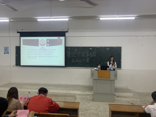 為促進我院學生德智體美全方面發(fā)展,展現(xiàn)管院學子朝氣蓬勃的精神面貌。管理學院于2020年11月11日17:40在??茍D書館601開展第九屆主持人大賽的開幕式。