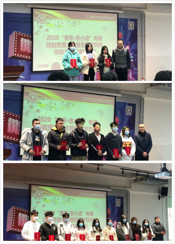 首先,校企處負(fù)責(zé)人鐘文浩宣讀了《關(guān)于表彰2020“京東·東小店”電商技能競(jìng)賽先進(jìn)個(gè)人的決定》,對(duì)競(jìng)賽成績(jī)給予了高度肯定,對(duì)獲獎(jiǎng)師生表示了祝賀。蔣宗驍、溫偉勝、何志宏、鐘文浩分別為獲獎(jiǎng)同學(xué)及優(yōu)秀指導(dǎo)老師進(jìn)行了頒獎(jiǎng)。