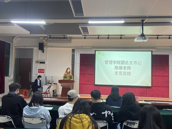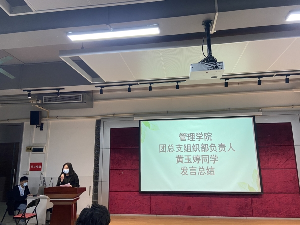 首先由主持人為大家介紹出席本次大會的領(lǐng)導(dǎo)嘉賓,他們分別是:管理學(xué)院團(tuán)總支陳媛書記、團(tuán)總支書記助理馮怡茵、團(tuán)總支常務(wù)副書記黃銳鴻、團(tuán)總支副書記曾繼開,本次會議由蘇曉華同學(xué)主持。