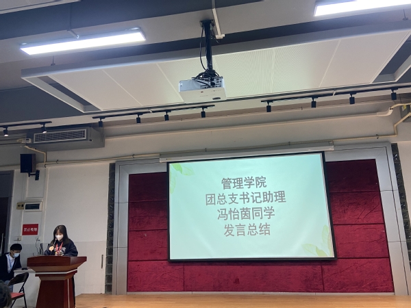 隨后由管理學(xué)院團(tuán)總支記助理馮怡茵同學(xué)上臺為大家總結(jié)這一學(xué)期的工作,她強(qiáng)調(diào)了團(tuán)支書工作的重要性,同時鼓勵同學(xué)們做到“在其位,謀其職”。身為團(tuán)支書更應(yīng)該做到完善自我,不辭辛苦,服務(wù)他人,從而引導(dǎo)班上的團(tuán)員提升凝聚力,不忘初心,積極向更高思想靠攏。