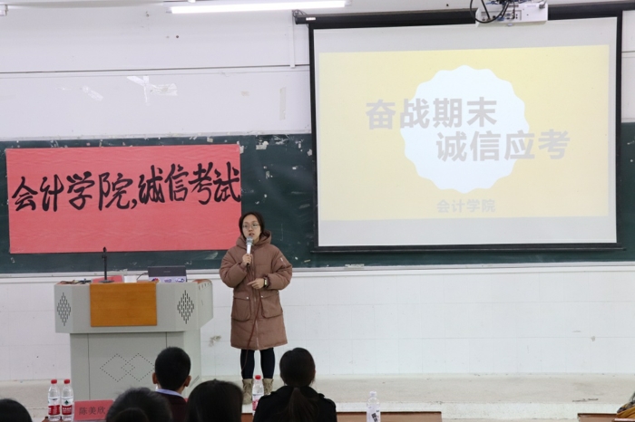 2020年12月31日,會計學(xué)院在圖書館201召開了期末誠信備考活動,蒞臨的領(lǐng)導(dǎo)和嘉賓有:會計學(xué)院學(xué)管副主任陳輝老師、校內(nèi)教學(xué)副主任楊素芹老師、團總支陳美欣書記、輔導(dǎo)員王冠飛老師、陳湛通老師、實習(xí)輔導(dǎo)員曾文樑老師。