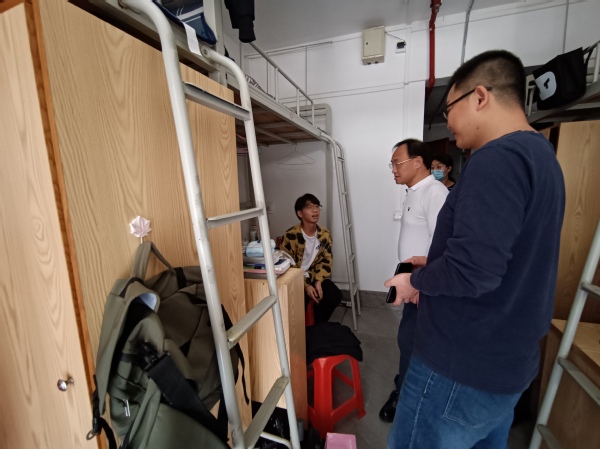 探訪期間,我院領(lǐng)導(dǎo)的關(guān)懷之情溢于言表,詢問(wèn)同學(xué)們是否住得習(xí)慣,將同學(xué)們的要求和建議一一登記,以便盡快切實(shí)解決學(xué)生的問(wèn)題,叮囑同學(xué)們注意人身財(cái)產(chǎn)安全,放好貴重物品,并語(yǔ)重心長(zhǎng)的對(duì)同學(xué)們說(shuō)要盡快調(diào)整好心態(tài)迎接新學(xué)期,以學(xué)習(xí)為重,積極進(jìn)取,不負(fù)青春韶華。