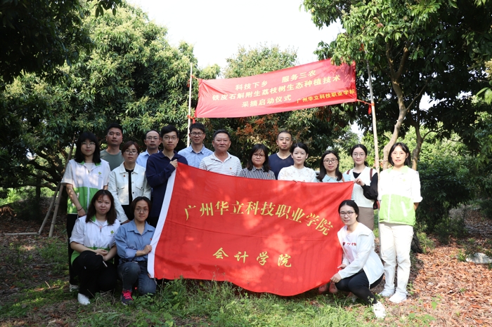 2021年3月18日早上8點,一支隊伍從廣州華立科技職業(yè)學(xué)院出發(fā),由李向林教授帶隊去往石斛附生荔枝樹種植基地——增城四豐村。隊伍中有廣州華立科技職業(yè)學(xué)院劉莊校長、馬龍海執(zhí)行校長、會計學(xué)院李哲院長、國際經(jīng)濟與外語學(xué)院隗波揚副院長、城建學(xué)院鄒筱萍副院長以及參與此項目的師生代表,另外增江街社工站王凡主任也帶領(lǐng)著社工們參加到隊伍中。