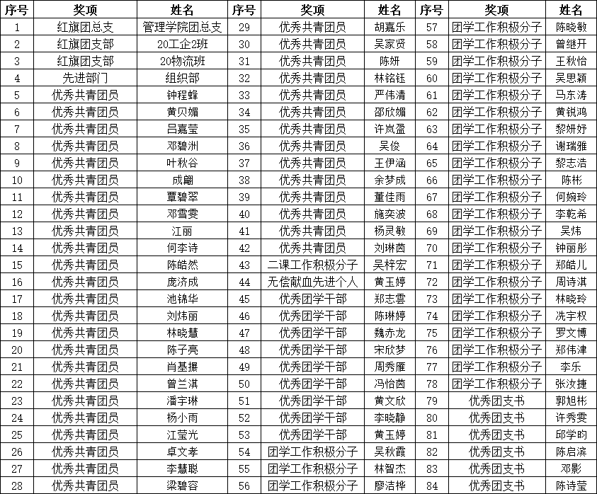 經(jīng)本人申請、學(xué)院核查,教師團(tuán)隊討論研究,綜合平時表現(xiàn)與學(xué)業(yè)情況,擬推薦以下名單參與廣州華立科技職業(yè)學(xué)院2020-2021學(xué)年五四表彰,公示如下: