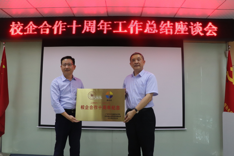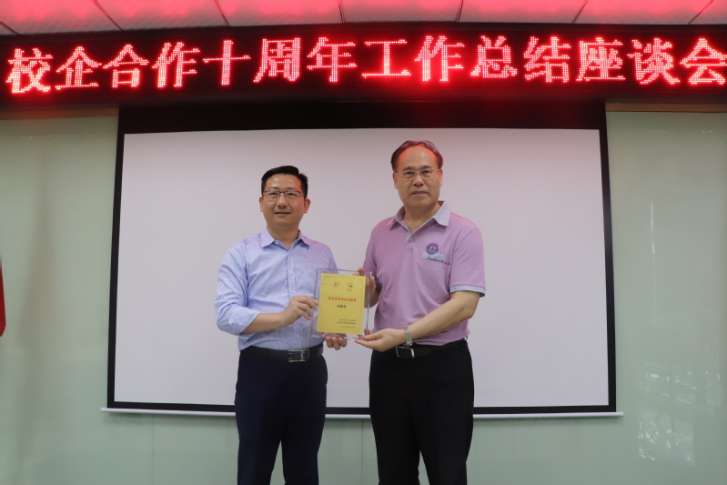 劉莊校長為德永信公司頒發(fā)校企合作十周年紀念牌匾