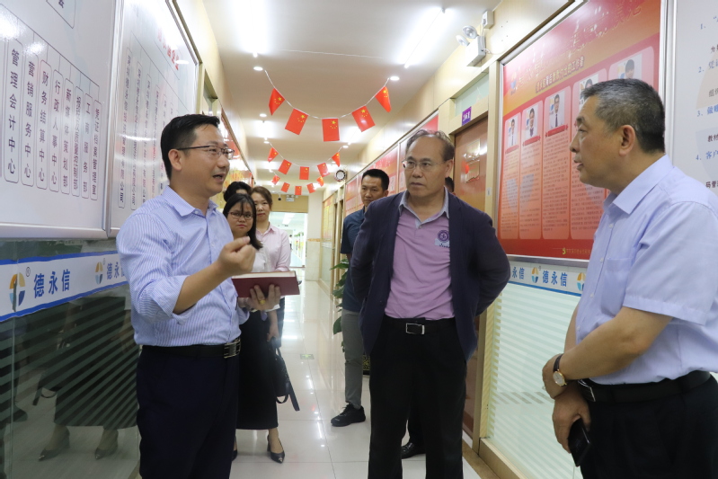 慶典前,公司領導陪同劉莊校長和馬龍海執(zhí)行校長參觀了德永信公司。冼朝卓總經(jīng)理在會上首先致辭,歡迎學校領導一行的到來,感謝學校對德永信公司的大力支持,并向我們介紹了德永信公司的發(fā)展歷程。馬龍海執(zhí)行校長對德永信公司創(chuàng)業(yè)16年的工作成就給予了極高的評價。認為德永信公司重視黨建工作和企業(yè)文化建設,重視團隊支撐和校企合作,形成了較強的凝聚力和可持續(xù)發(fā)展?jié)摿ΑJ陙硇F蠛献鞒尚э@著,希望未來在產教融合發(fā)展的道路上能走得更遠。