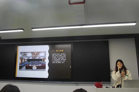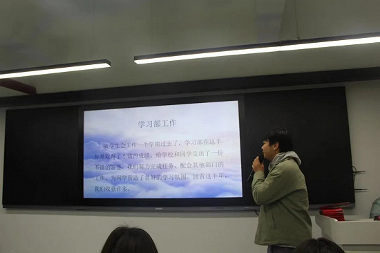 國貿(mào)學(xué)院團(tuán)總支學(xué)生會主席團(tuán)和各部門代表進(jìn)行干部述職評議工作匯報