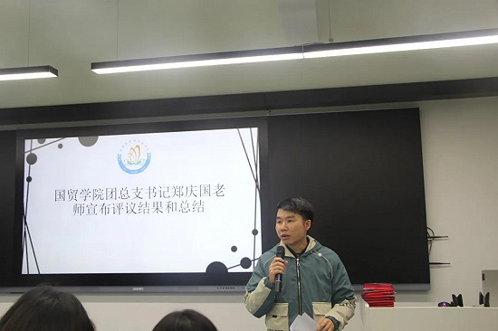 最后,由國貿(mào)學院團總支書記鄭慶國老師進行大會總結。首先,祝賀受表彰的同學在2020年交上了一份滿意的答卷。其次,鄭慶國老師對本學期為國貿(mào)學院團總支學生會工作付出辛勤工作的各部門負責人和實習生表示衷心的感謝和誠摯的問候。同時,鄭慶國老師還提醒學團總支學生會所有成員要牢記八字精神,始終服務于同學。并對團總支學生會提出三點希望:希望團總支學生會全體成員在接下來能更加全力以赴的開展各項團學工作;希望團總支學生會全體成員在工作中要互相配合、互相學習、取長補短、樹立榜樣;希望團總支學生會全體成員在下學期用實際行動再續(xù)輝煌,為我院爭光添彩。