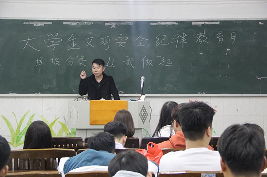 我院于2021年3月10日晚上7點,在西一教學(xué)樓四樓各多媒體教室開展了“大學(xué)生文明安全紀律教育月—垃圾分類,從我做起”的主題班會。