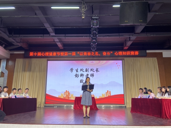 緊接著由學(xué)生處副處長(zhǎng)彭柳老師對(duì)本次比賽致辭,她表示:關(guān)注大學(xué)生心理健康積極開(kāi)展大學(xué)生心理健康教育,引導(dǎo)學(xué)生健康成長(zhǎng)是心理健康教育工作的重要內(nèi)容。她希望同學(xué)們通過(guò)此次活動(dòng)能進(jìn)一步加強(qiáng)自身心理健康,積極調(diào)整自己的狀態(tài)。并對(duì)在本次比賽準(zhǔn)備中投入了極高熱情與付出辛勤汗水的老師及工作人員表示慰問(wèn)與感謝,最后預(yù)祝本次心理知識(shí)競(jìng)賽取得圓滿成功。