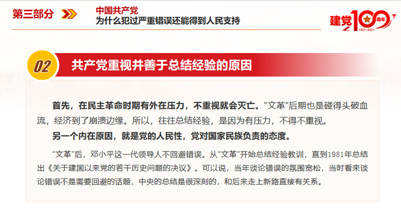 會(huì)議由隗波揚(yáng)同志主講,重點(diǎn)學(xué)習(xí)“中國(guó)共產(chǎn)黨為什么能建立新中國(guó)”、“中國(guó)共產(chǎn)黨為什么能收拾好國(guó)民黨留下的爛攤子”、“中國(guó)共產(chǎn)黨為什么犯過(guò)嚴(yán)重錯(cuò)誤還能得到人民支持”、“中國(guó)共產(chǎn)黨為什么犯過(guò)嚴(yán)重錯(cuò)誤還能得到人民支持”。
