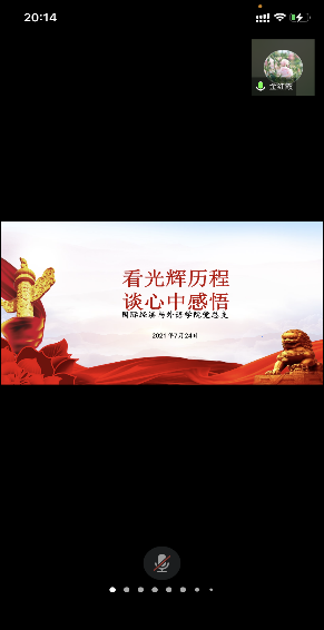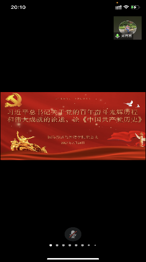 2021年7月24日晚上八點,國際經(jīng)濟與外語學(xué)院黨總支在騰訊會議平臺開展了“習(xí)近平總書記關(guān)于黨的百年奮斗光輝歷程和偉大成就的重要論述、《論中國共產(chǎn)黨歷史》”的學(xué)習(xí)會,參加本次會議的有國際經(jīng)濟與外語學(xué)院黨總支書記隗波揚老師、國際經(jīng)濟與外語學(xué)院第一黨支部書記陳茜老師、國際經(jīng)濟與外語學(xué)院第二黨支部書記劉偉鑫老師和全體師生黨員。
