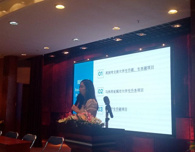 在本次會上國際班的宣講內(nèi)容分別包含了英國考文垂大學專升碩、專本碩項目,馬來西亞城市大學專升本項目以及西班牙專升碩項目。而這其中,無論是歷史悠久的考文垂大學,或是生活溝通便利的馬來西亞城市大學,還是高性價比的西班牙的大學均是各有特色。提供多個選項也是為了便于同學們能做出真正滿意又合適的選擇。
