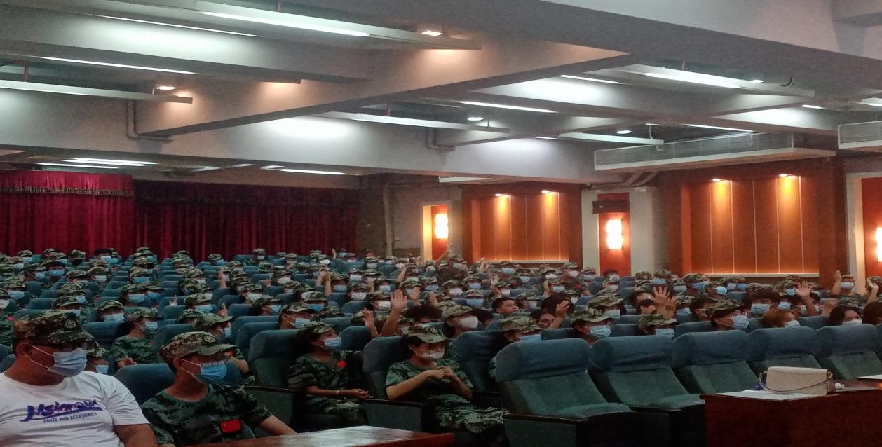 夏日炎炎,新生們在經(jīng)歷了一天的軍訓后,軍訓服尚且未換下,便齊整有秩序地來到宣講會現(xiàn)場。面對宣講老師們的熱情講解,同學們同樣地也以熱情回報,提問積極,反應迅速。