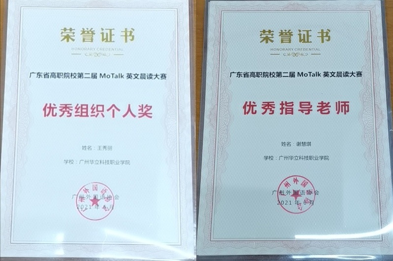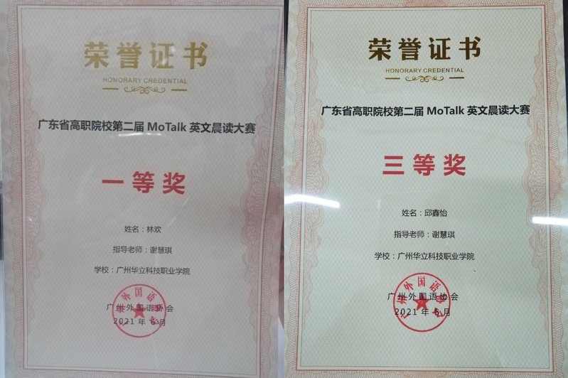 2021年4月至6月,我校多名同學參加了由廣州外國語協(xié)會主辦、廣東理工職業(yè)學院、廣東省外語藝術職業(yè)學院承辦,廣東粵圖之星科技有限公司協(xié)辦的廣東省高職院校第二屆MoTalk英文晨讀大賽。在反復誦讀中華國學經(jīng)典以及黨章文獻的大賽過程中,我校同學不僅鍛煉了英語口語能力,同時也品鑒到中國古往今來的文化之美。通過中英雙語的形式領悟,更是能加深對兩門語言中美的理解。