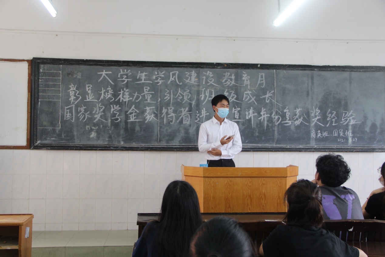 9月29日早上,財(cái)經(jīng)學(xué)院開展了一次國家獎(jiǎng)學(xué)金獲得者進(jìn)班宣講,并分享獲獎(jiǎng)經(jīng)驗(yàn)的活動(dòng)。國家獎(jiǎng)學(xué)金獲得者分別來自19級(jí)金管班鄭小麗同學(xué)和20級(jí)會(huì)計(jì)2班周俊鵬同學(xué)。