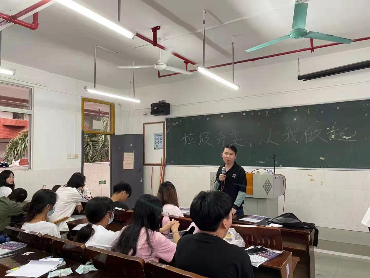 首先,鄭慶國老師向學生仔細講解了垃圾分類的重要性以及分類方法,倡導學生們在今后生活中自覺進行垃圾分類,并通過行動影響身邊人,營造起垃圾分類的環(huán)保氛圍。
