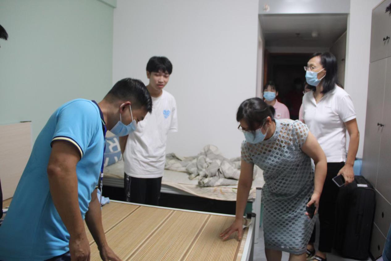 “家是哪里的?”“到學(xué)校還適應(yīng)嗎?”“住的習(xí)慣嗎?”每到一處,領(lǐng)導(dǎo)會(huì)親切地詢問同學(xué)們生活是否適應(yīng)、入學(xué)感受如何,輕松的對(duì)話迅速拉近了彼此的距離。同時(shí)希望同學(xué)之間在生活中要相互照顧,學(xué)習(xí)中要互相幫助,共同進(jìn)步,“挺適應(yīng)的,”“謝謝老師” 新生們狀態(tài)精神飽滿,都很適應(yīng)宿舍的生活,對(duì)領(lǐng)導(dǎo)和老師們的到來十分感動(dòng),紛紛禮貌道謝?!坝惺裁磫栴}和需求,及時(shí)向宿管阿姨和輔導(dǎo)員老師反饋”,領(lǐng)導(dǎo)告訴同學(xué)們,學(xué)校所有老師都會(huì)第一時(shí)間幫助解決。
