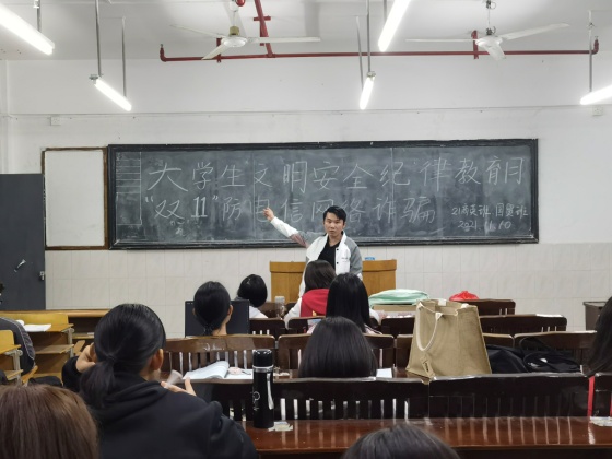 財經(jīng)學院于2021年11月10日晚上7點半,由鄭慶國老師在西一21級各班召開了“雙11”防電信網(wǎng)絡詐騙主題班會。