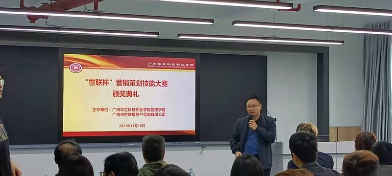 為了響應時代潮流,激發(fā)大學生學習營銷知識的興趣,同時為每位大學生提供一個盡情發(fā)揮自我營銷才能,展現(xiàn)自我風采,張揚自我的平臺。2021年11月18日星期四下午,廣州華立科技職業(yè)學院管理學院與廣州世聯(lián)行聯(lián)合舉行的“世聯(lián)杯”營銷策劃技能大賽總決賽在我校西3-212拉開序幕。出席總決賽的領導和評委有廣州世聯(lián)行人才發(fā)展部總監(jiān)張楠、策劃部經(jīng)理周天南、新媒體運營經(jīng)理王飛龍、人才發(fā)展部經(jīng)理熊思琪,廣州華立科技職業(yè)學院校長助理郭仲先、學校校企處處長鐘文浩、管理學院院長溫偉勝、管理學院辦公室主任朱向平、市場營銷系主任康信恩以及管理學院師生代表。決賽由管理學院校外教學主任吳小宇老師宣布比賽開始,吳老師對進入總決賽的同學表示祝賀,并希望同學們繼續(xù)保持營銷風采,在決賽中彰顯自我,超常發(fā)揮,取得佳績。