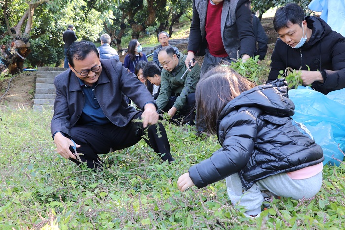 接下來正式開始采摘活動。老師同學(xué)們在李教授的指導(dǎo)下紛紛投入其中,每個人臉上都洋溢著收獲的笑容。此次除了石斛有好收成外,另一種植物也收成了,那是李教授一個新的農(nóng)業(yè)創(chuàng)新項目——涼粉草,是在荔枝樹下種的涼粉草,是除荔枝外又一增城特產(chǎn),我們期待李教授的實驗成果。