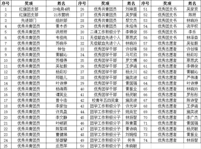經(jīng)本人申請(qǐng)、學(xué)院核查,教師團(tuán)隊(duì)討論研究,綜合平時(shí)表現(xiàn)與學(xué)業(yè)情況,擬推薦以下名單參與廣州華立科技職業(yè)學(xué)院2021-2022學(xué)年五四表彰,公示如下,公示期為2022年04月16日-04月20日,有異議請(qǐng)?jiān)诠酒陂g前向管理學(xué)院提出,聯(lián)系人:陳媛,電話:020-82911837。