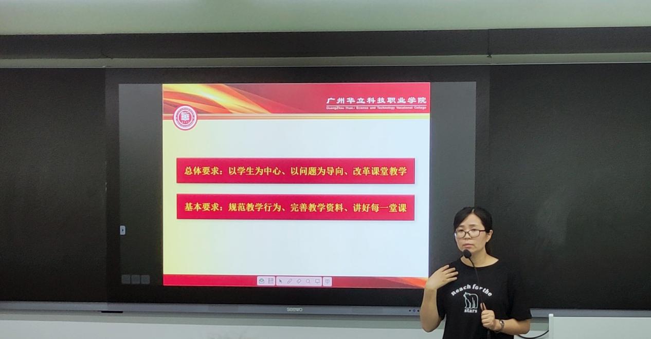會上,教學主任楊素芹老師以“以學生為中心,講好每一堂課”為主題分享了自己的教學經驗和想法,她指出老師要以學生為中心、以問題為導向、改革課堂教學、規(guī)范教學行為、講好每一堂課。學生要做到上課認真聽講跟著老師的思路汲取知識、課前預習、課后復習、不恥下問;一堂好課需要老師和學生的共同努力。