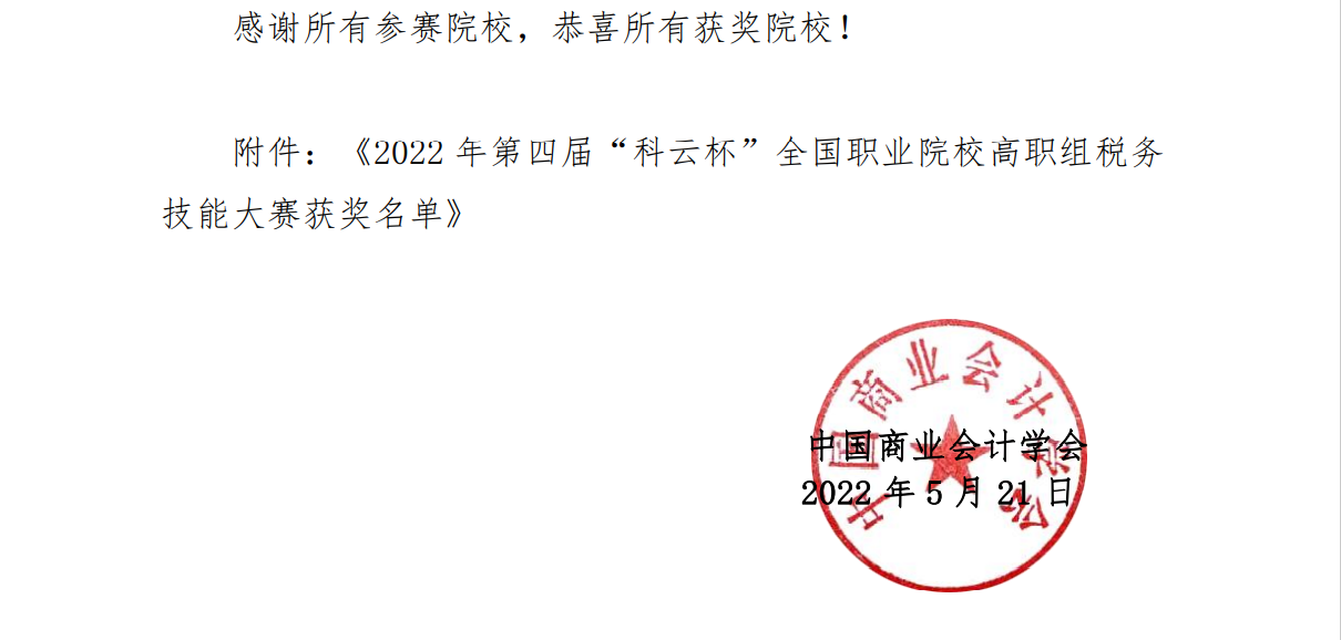 2022年5月21日,由中國商業(yè)會計學(xué)會、全國財經(jīng)職業(yè)教育集團(tuán)主辦的2022年第四屆“科云杯”全國職業(yè)院校高職組稅務(wù)技能大賽在云端成功舉辦。本屆大賽歷時2個多月,全國400多所院校共590多支隊伍報名參賽。