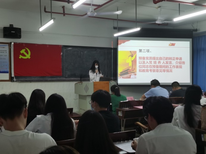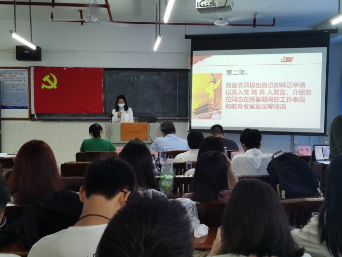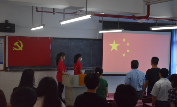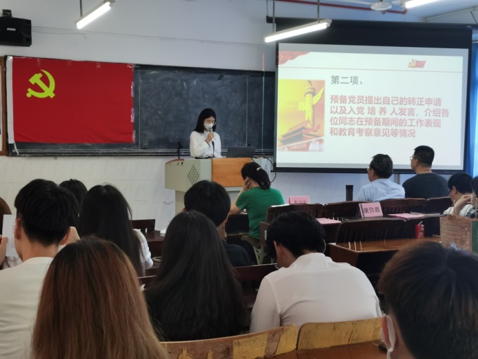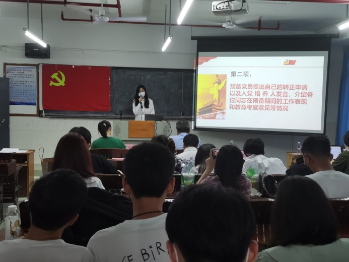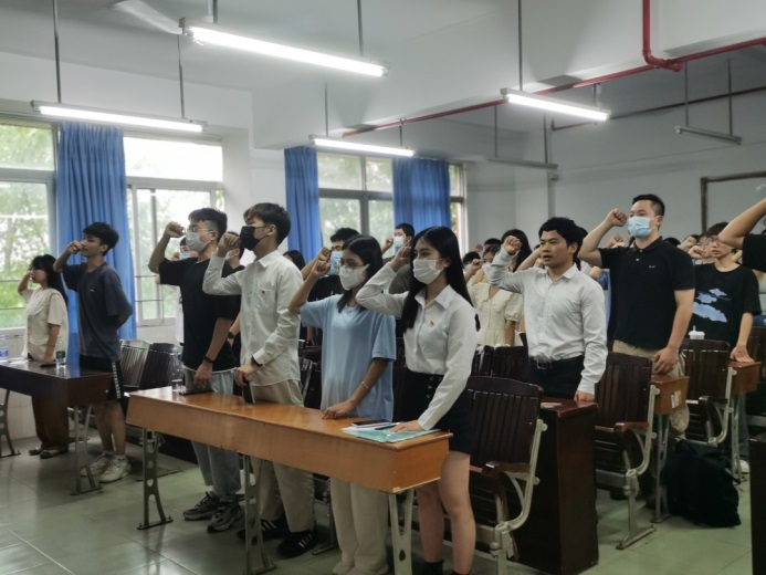 第五、緊接著由管理學院第二黨支部組織(宣傳)委員陳媛同志帶領(lǐng)全體黨員重溫入黨誓詞。