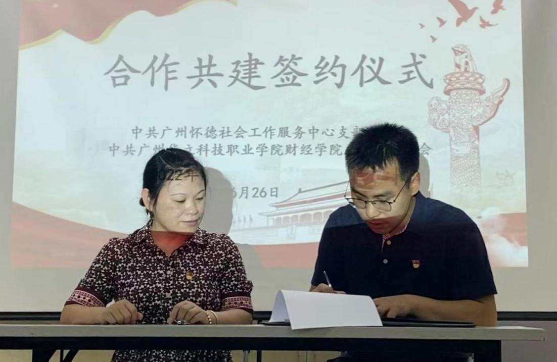 最后,為促進(jìn)“黨建引領(lǐng)、業(yè)務(wù)互助、優(yōu)勢互補(bǔ)”,廣州華立科技職業(yè)學(xué)院財經(jīng)學(xué)院黨總支和廣州懷德社會工作服務(wù)中心黨支部簽訂合作共建協(xié)議。希望通過雙方黨組織積極發(fā)揮各自優(yōu)勢,教育引導(dǎo)廣大黨員不忘初心,踐行對黨和人民的莊嚴(yán)承諾,把“全心全意為人民服務(wù)”的宗旨落到工作實處。